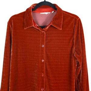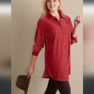 SOFT SURROUNDINGS Velvet Boyfriend Tunic Shirt In Garnet Womens Size Medium