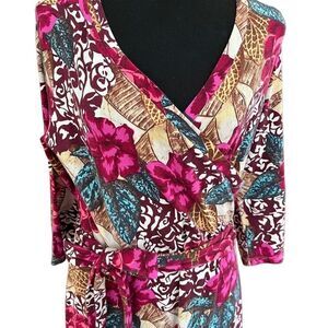 Maxi Dress, size Tall Medium . This amazing floral wrap dress has a tie at the waist. 1/2 length sleeves. Faux wrap. cotton, modal, and spandex blend, comfortable and stretchy.