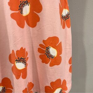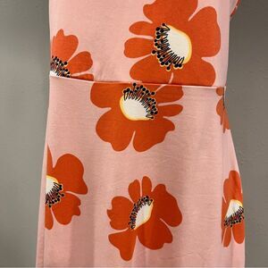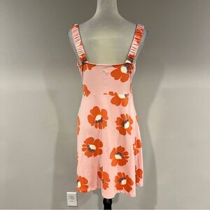 Charming pink dress with bold orange floral pattern. Perfect for a vibrant look.