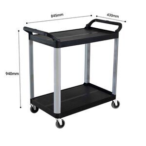 Transport and organize food or supplies effortlessly with the SOGA 2-Tier Food Trolley. Made from durable PVC, this lightweight yet sturdy trolley is perfect for both home and commercial use. Its two-tier design offers ample storage space, while the sleek black finish fits any setting. Ideal for kitchens, dining areas, buffets, or catering events.