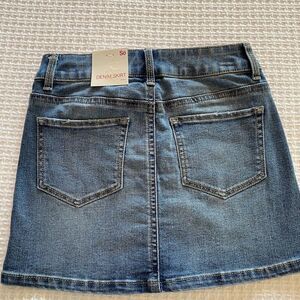 SO GIRLS Denim Stretch Skirt Size 8 5-pocket, Zipper Fly and button closure. Length Approx 12.5” G672