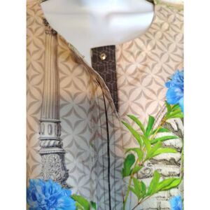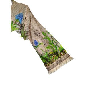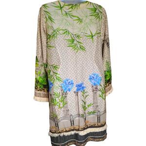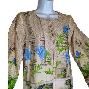 This is a really pretty, colorful scenic pattern SOHAY By Diners Vibrant Pastel Printed Women’s Cotton Shirt/Kameez. Size Small. Fringe hem and sleeves. Side slits. Great condition!