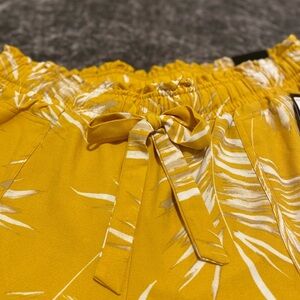SOHO APPAREL Vibrant Yellow Pants with Leaf Design/size M