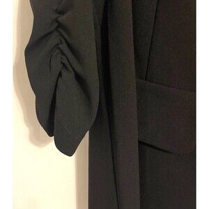 Sharp black suit jacket separate with one button closure and 3/4 gathered sleeves for a modern touch. Excellent preowned condition.