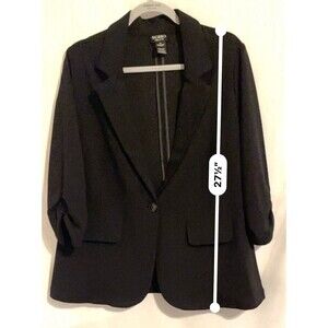 SOHO Apparel Ltd Blazer Suit Jacket Black 3/4 Gathered Sleeves Women’s SZ 1X