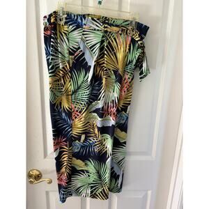 The SOHO Apparell Ladies PXL Poly wide leg yoga pants are designed for a casual occasion with a stylish front tie and convenient pockets. Made from lightweight polyester fabric in a tropical pattern, these capri-style pants feature a high rise waist and a relaxed fit. The pants are machine washable and come in a variety of vibrant colors such as black, blue, green, orange, and yellow. Perfect for summer, fall, and spring, these pants are a versatile addition to any woman's wardrobe, suitable for both yoga and everyday wear.