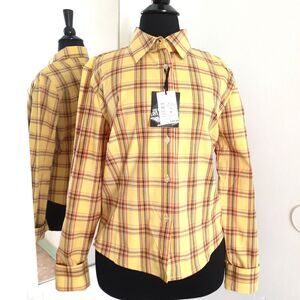 SOHO Babe Camel Yellow Plaid Woven LS Button Shirt JR. Size Large NWT
