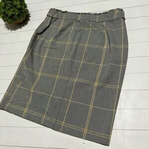 This skirt is in great condition! Gray and yellow colored plaid. Paper bag elastic stretch waist. Long modest length pencil skirt. Women’s size small. 2.2.24 S