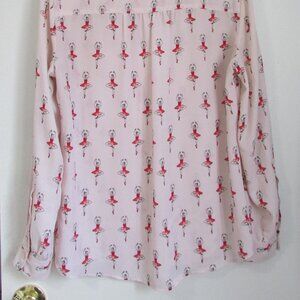 This is an NY&C SOHO Jeans soft shirt with a ballerina print and two popover pockets. The full length sleeves can be buttoned up to your desired length. When you walk down the street in this shirt, the people will turn their heads and say “wow, she's a fairy.”