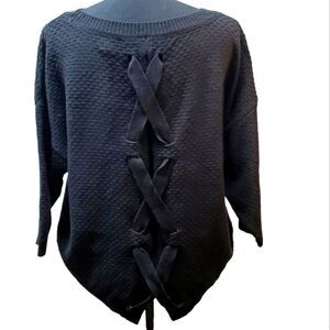 SOHO Jeans Black Textured Knit Sweater – Size XS – Lace-Up Back