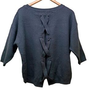 Soho Jeans sweater • XS sweater • black knit top • lace up back sweater • tie back • crisscross back detail • textured knit • waffle knit • cozy sweater • casual chic • minimalist style • fall winter sweater • soft acrylic sweater • trendy knitwear • everyday top • boutique style • comfy knit sweater
