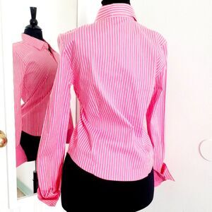 SOHO Jeans Pink White Stripes Cotton Blend Longsleeved Button Shirt JR. Size L