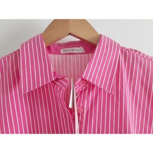 SOHO Jeans Pink White Stripes Cotton Blend LS Button-Up Shirt JR. Size L NWT