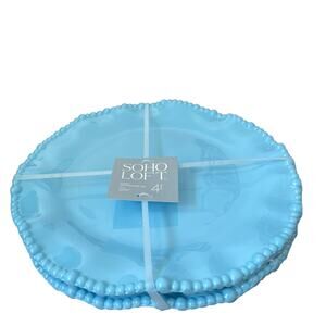 SOHO LOFT Sky Blue Melamine Scalloped Pearl Edge Dinner Plates 11" Set of 4 NEW