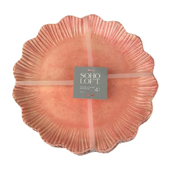SOHO Loft Melamine Dinner Plate Pink Scalloped Set of 4 10.75" Indoor Outdoor