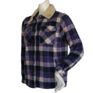 SOHO THREADS Fleece/Sherpa Jacket, S, Purple Plaid, Fuzzy Lining, Pockets