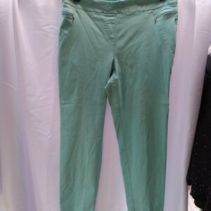 I Sea green stretch pants, rayon/nylon/spandex. Faux zipper pockets
