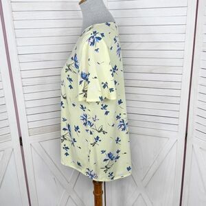 SO Heritage Floral Lace Up V Neck Short Sleeve Blouse Yellow Blue Small