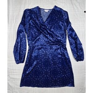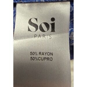 SOI PARIS Dress Surplice Neck Paisley Geometric Blue Cupro Rayon SZ EU 42 US L