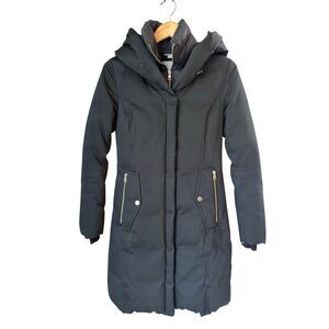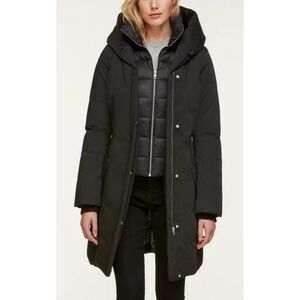 SOIA & KYO Annalise-MBN Hooded Long Down Coat In Black Size XS. Pre loved with a few flaws (see picture). Overall it’s in great shape, with lots of life left to it. It has been dry cleaned. $695 retail.