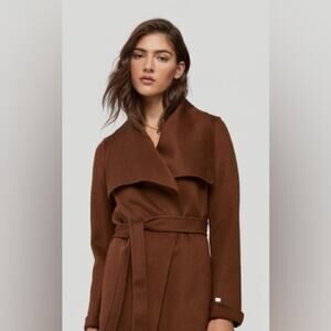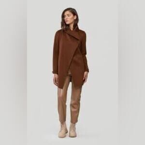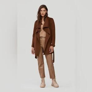 Slip into the BRIDGETTE by SOIA & KYO – a sophisticated, straight-fit, mid-length coat made from our luxurious double-face wool fabric. The cascading front collar, roll-up cuffs, and waist-cinching belt make this wrap coat anything but ordinary. Whether thrown on over jeans and a tee or paired with a sleek midi dress, this wrap coat can be worn closed with its unlined belt or open for a laid-back fall or winter look.
