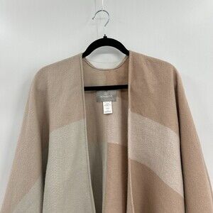 SOIA & KYO Nude Neutral Colorblock Super Soft Poncho Fringe Cardigan One Size