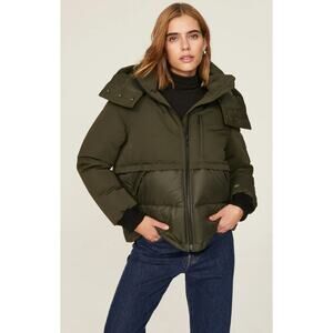 Stay warm and stylish all season in this olive green puffer by Soia & Kyo. Designed with functional pockets and a modern silhouette, it makes your winter commute lighter and cozier—without compromising on style.