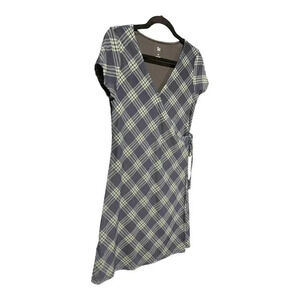 SO Juniors Womens Navy Green Plaid Short Sleeve Faux Wrap Mini Dress Sz Small