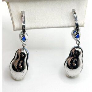 The SOKOLOV Sterling Silver 925 Enamel Matryoshka Nesting Doll Earrings are a stunning piece of fine jewelry that captures the essence of Russian craftsmanship. Made from high-quality sterling silver and adorned with beautiful blue enamel details, these dangle/drop earrings feature a unique nesting doll design that adds a playful touch to any outfit. The earrings are accented with blue crystals, adding a touch of sparkle and sophistication to the overall look. Made in the Russian Federation, these earrings showcase the artistry and quality that SOKOLOV is known for.