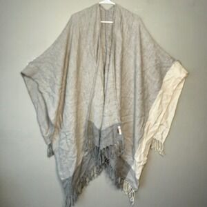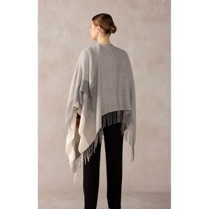 SOL ALPACA US ETHNIC CAPE/PONCHO - ANTIQUE WHITE AND SUPREME GRAY 57"x52"