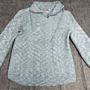 SOL blue Cowl Neck Sweater with Textured Knit pure Baby Alpaca made in Peru