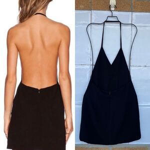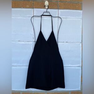 Slit on the bottom right hand side Wraps around neck 90% poly, 10% spandex open back