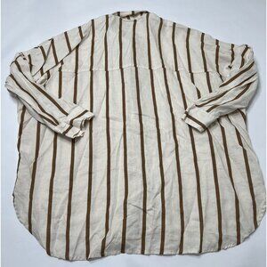 SOLAI Capri Linen Oversized Button Top in Toffee Stripe