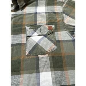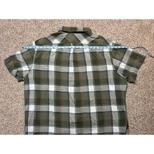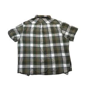 SOLARIS OUTDOORS men's Short sleeve, button down shirt, size 3XB, High Quality, cotton Blend shirt. Green & White textured Plaid pattern, Soft material.