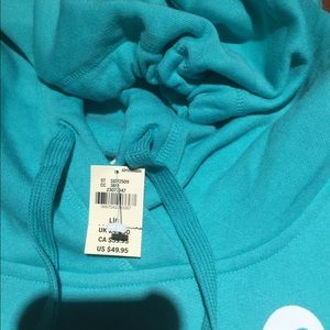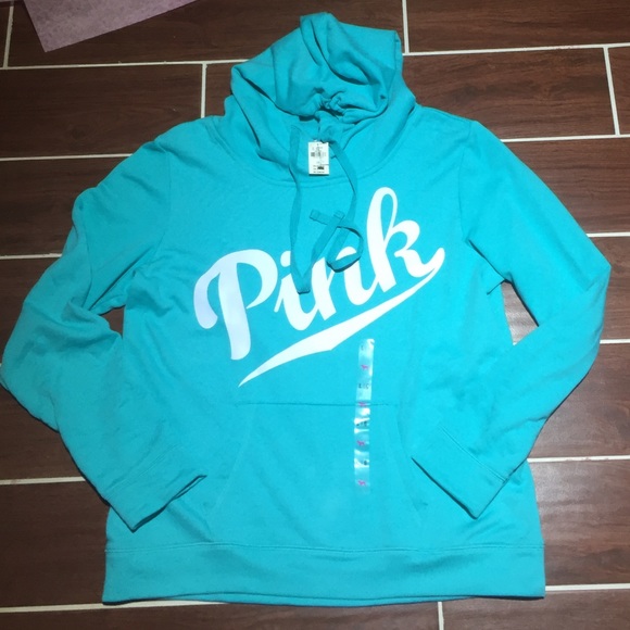 Pullover hoodie in turquoise/blue with white pink logo on front !! Super cute