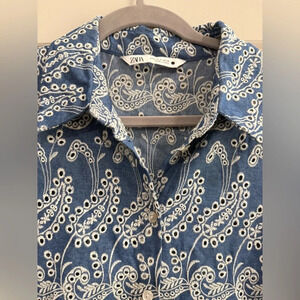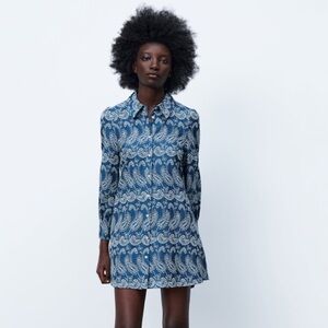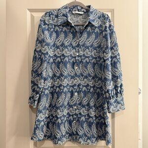 SOLD - 100% Cotton Zara Blue and White Long Sleeve Dress