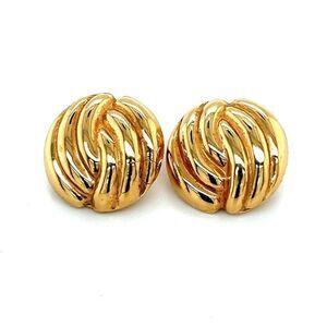 Real 14k Yellow Gold Scalloped Design Clip On Earrings , NOT GOLD PLATED OR GOLD FILLED.
