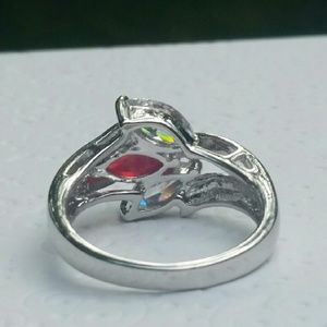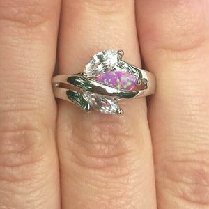 Brand new, worn only for the photo. Gorgeous synthetic pink opal & natural white topaz in 18K white gold filled setting. Perfect condition, no tags.