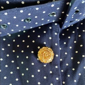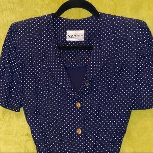 SOLD 1980s Rayon Belted Dress Shoulder Pads Button front polka dots