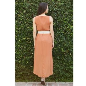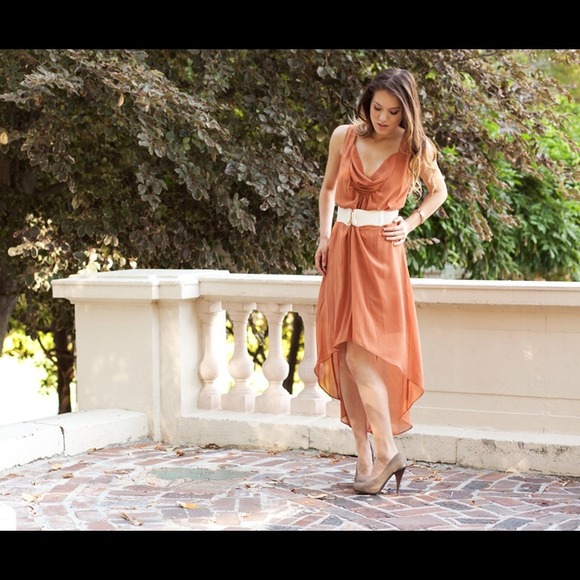 Brand New! Chiffon Maxi Dress with cream colored belt. Sizes Available: Small and Medium