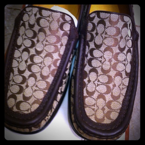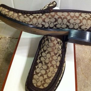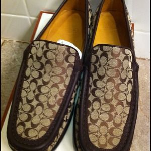 Chocolate brown monogrammed Coach loafers with leather detail. Classic. Super comfortable, gently worn. Size 8. Have original box