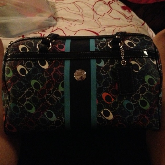 Authentic Blue with colorful "C" Coach purse and ID wallet. Only used once. Just like new. Perfect condition.