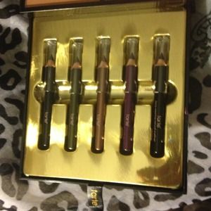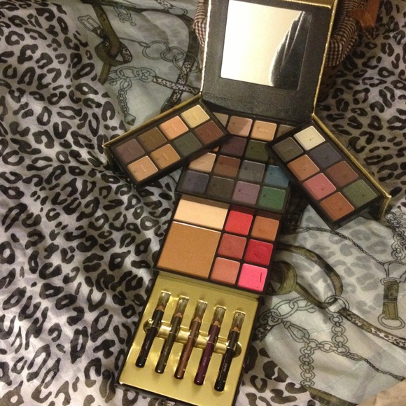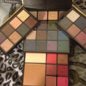 This was never used however one shadow and 3 lipsticks were tested on my hand. Eyeliners were not used. This has 32 shadows one highlighter one bronzer. 6 lip colors and 5 eyeliners.