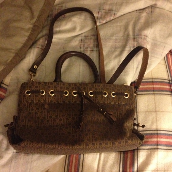 This bag is so cute has handles and shoulder strap. This is authentic. There is a small stain. I've priced accordingly.