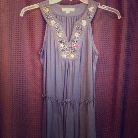 Super cute! Bought at monkees and never wore! Grey/blue. Ties at waste. NWOT. Would be cute with sandals on a warm day. Silver beading.