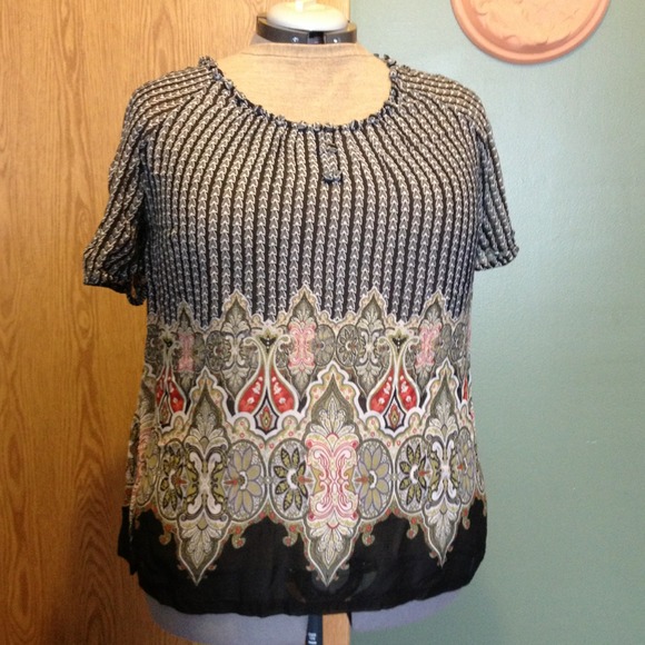 100% Rayon top from Avenue's "Soft" collection. Beautiful covered button detail around the neckline. Dress up or dress down, it's a show stopper! Size 18/20