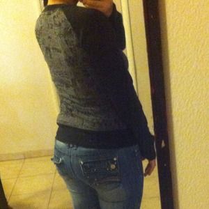 Cute grey and black Roxy shirt with striped buttons on right side. XL in girls but I'm a medium in women's and it fits me perfect!