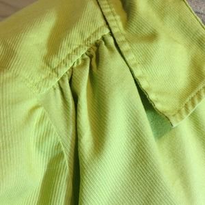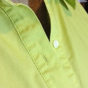 This is a great oversize shirt that almost looks like it could be his except for the feminine details. Gathers at the shoulders, pretty little white buttons, oversize cuffs. Looks sexy with skinny jeans or leggings. 78% cotton, 22% polyester.