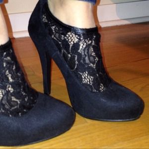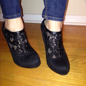 Black booties with lace go great with just about anything. Dresses, jeans, skirts, leggings. 5 inch heel. In great condition only worn twice. True to size