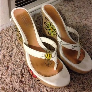 Coach white wedge sandals with floral design on platform. Size 8. Some dirt marks on base, but only worn a few times. Perfect for the summer!